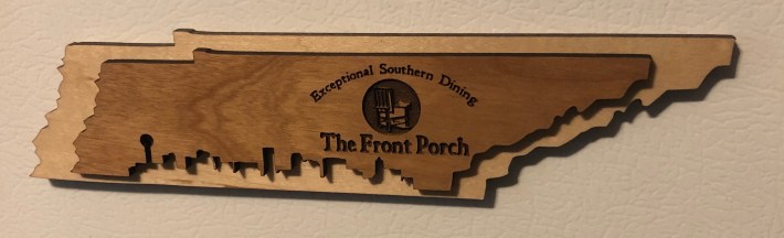 When I was delivering product to Powell one day Bart asked me if I had ever thought to laser-cut a black bear on something and try to sell some product in Pigeon Forge. I went home and immediately drew some concept ideas and planned a sales trip to the mountains. That, of course, is “the-back-story” for another day! Needless to say I wish to say a heartfelt “thank you” to the Elkins, and would urge you to visit their fine restaurant and enjoy some good cooking! While you are there wander upstairs and peruse the assortment of crafts from “local artisans”, you might even pick up a quality Tennessee Front Porch magnet!